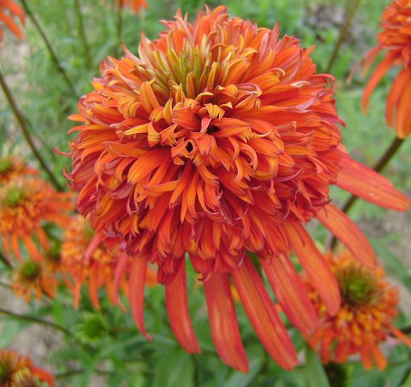 Эхинацея пурпурная Summer Salsa - это настоящий огненный танец в вашем саду! Этот многолетний цветок поразит вас своей яркой оранжево-красной окраской, которая со временем только усиливается. Сочетание красок цветка с зелеными листьями создает неповторимый контраст и придает вашему саду особый шарм.