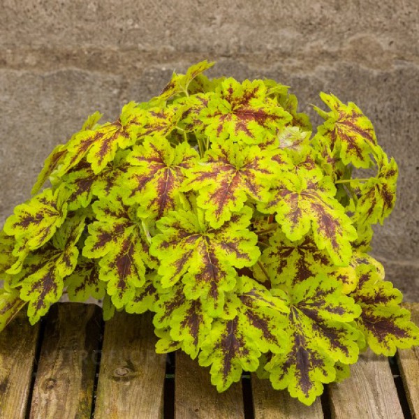 Рассада гейхереллы Солар Пауер (Solar Power) порадует изящным видом яркой желто-зеленой листвы с красными прожилками в центре. Этот сорт нашел широкое применение в ландшафтном дизайне. Его используют для украшения бордюров, рабаток, оформления альпийских горок и составления смешанных клумб. Летом среди листвы появляются высокие цветоносы с белыми соцветиями.
