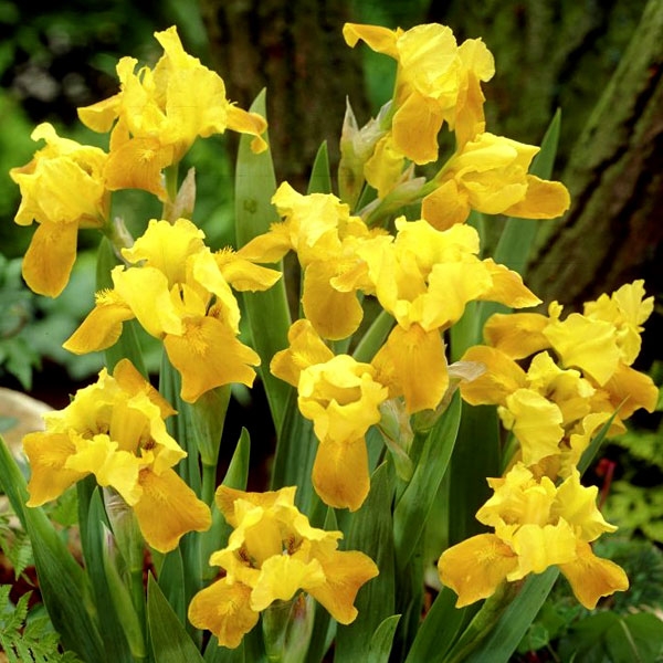 Рассада ириса Глимин Голд (Gleaming Gold) позволит легко и непринуждённо украсить бордюры ярко-жёлтыми, с бронзовым отливом, цветами. Высота растения 15-30 сантиметров, листья широколинейные, с сизоватым оттенком. Цветонос даёт один цветок. Семена в процессе размножения не используются. Ирис Глимин Голд хорошо приживается на рыхлой почве без избытка влаги. В глинистые тяжёлые грунты необходимо добавлять песок. Любит солнце, засухоустойчив. Кроме облагораживания дорожек хорошо подходит для композиций с другими цветами на клумбах, альпинариях, создания других элементов ландшафтных дизайнов.