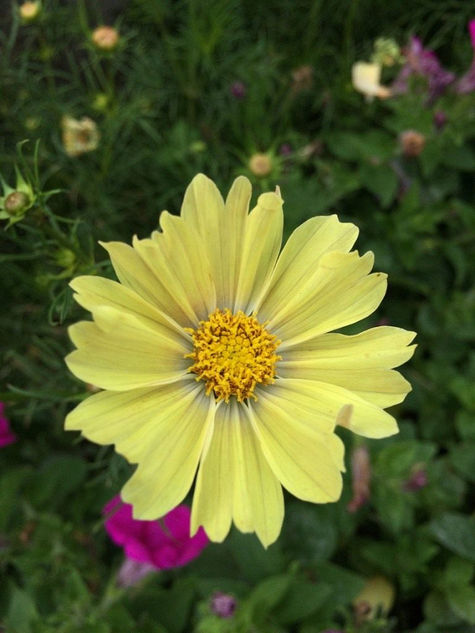 Космея "Золотая свадьба" - это великолепное растение с золотисто-лимонными цветками, которые будут радовать ваш взгляд в течение нескольких месяцев в году. Ее стебель прочный и устойчивый, достигает высоты до 50-60 см, а диаметр цветка может достигать 7-10 см. Листья космеи имеют интересную форму и придают растению особый шарм.