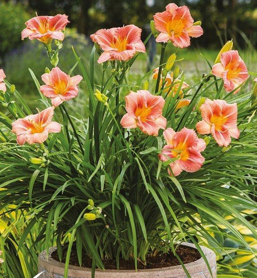 Саженцы лилейника гибридного Эвери Дейлили Сериз относятся к сортовой серии с компактными размерами, но невероятно обильным цветением и эффектными цветами. Данный сорт характеризуется бутонами нежно-розового цвета с темной серединкой и широким горлом желтого оттенка. Такие мини-версии крупных растений становятся очень актуальными в современных садах. Их удачно используют в разных видах ландшафтного дизайна, оформляя разные архитектурные формы, например, водоемы, высаживают вдоль дорожек в качестве бордюрных растений или используют в сочетании с элегантными красками благородных невысоких цветов.
