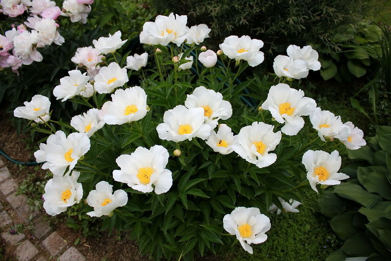 Луковицы пиона для патио Дублин ― превосходное и удачное приобретение для тех, кто хочет украсить свой сад необычным ароматным пионом. В высоту взрослое растение не превышает 25 сантиметров, поэтому успешно выращивается не только в открытом грунте, но и в кашпо. С его помощью можно украсить террасу, беседку или патио. Пион с поздним сроком цветения представляет собой настоящий букет, который состоит из крупных цветков белого цвета. Каждый цветок украшает высокий сливочно-золотистый центр. В сортовой серии можно подобрать достойную компанию пиону Дублин из других контрастных цветов.