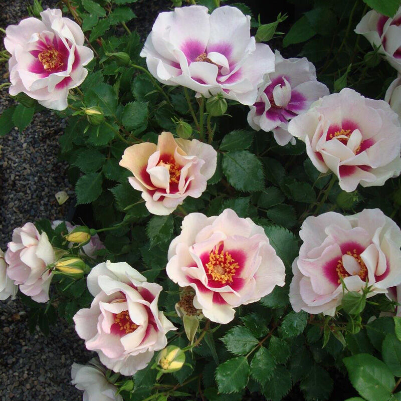 Это растение предпочитает солнечные места и обогащенные почвы, идеально подходит для групповых посадок. Роза Bulls Eye отличается морозостойкостью и легкостью в уходе. Рекомендуется регулярный полив и удобрения для обеспечения роскошного цветения.
